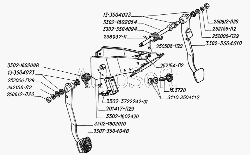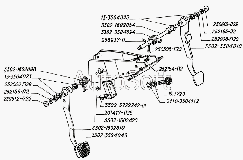 Ось 3302-1602054 педали сцепления производства ГАЗ (РФ), Код для заказа: 00-ГР013964