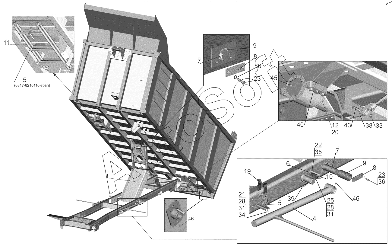 | МАЗ | МАЗ-6501B9 (2015) | 650136-2815033 | Ось | Установка платформы |
