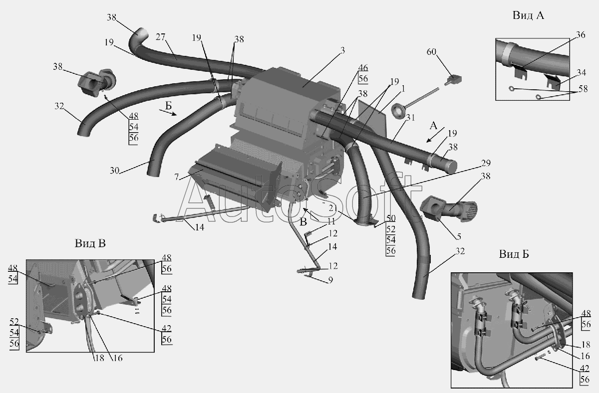 Отопитель автомобиля семейства «МАЗ» серии Евро-4 с автоматическим приводом, предназначен для создания микроклимата в кабине водителя