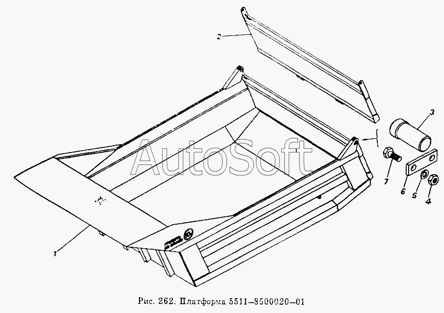 5511-8503066 Палец заднего борта в комплекте с гайкой и шплинтом КАМАЗ