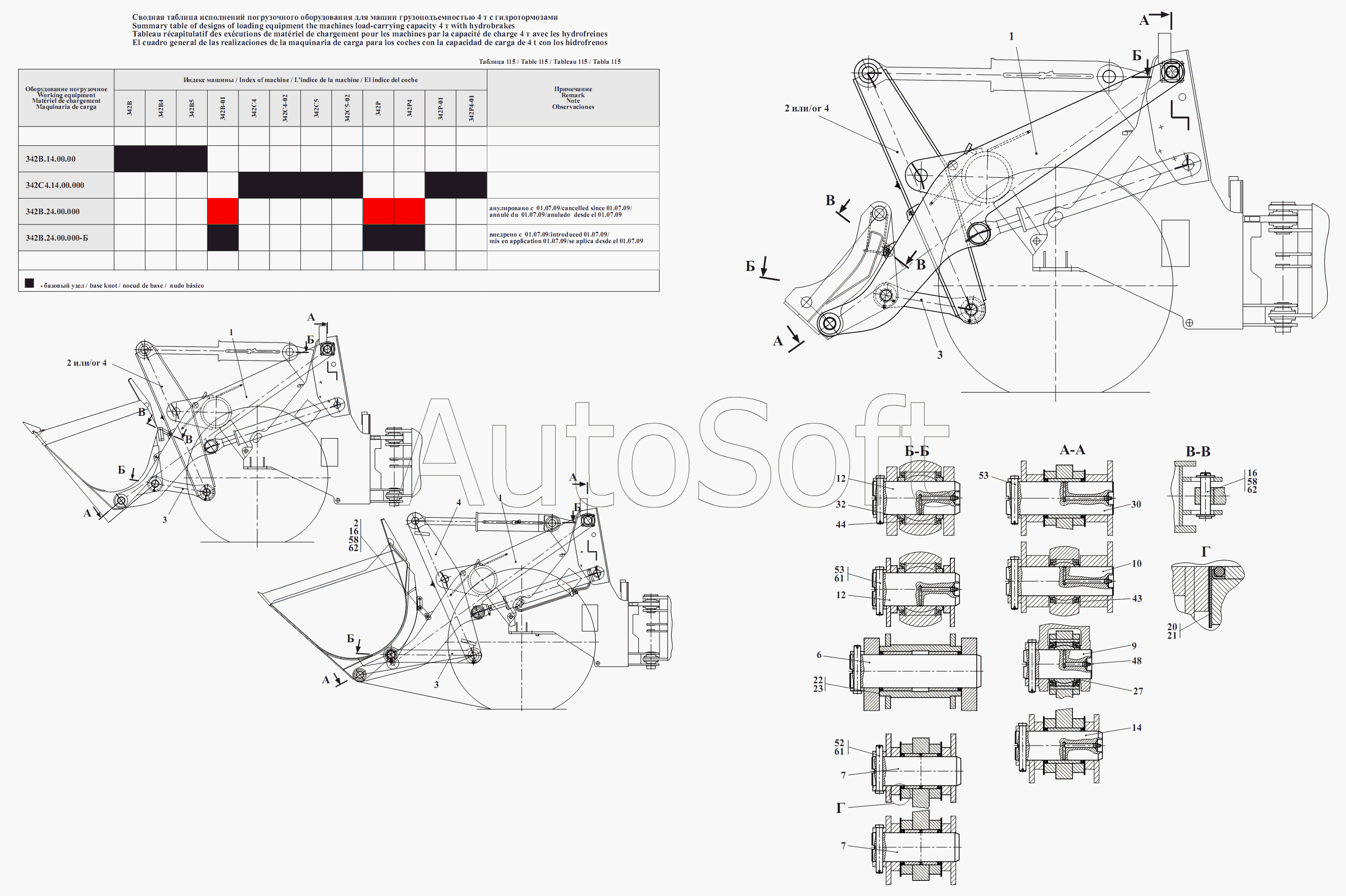 | Амкодор | Амкодор-342В, 342С4, 342Р (2010) | ТО-2814.00.016 | Палец | Сводная таблица комплектации применяемого погрузочного оборудования |
