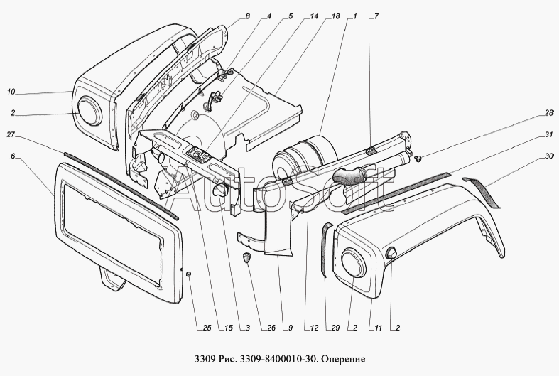 | ГАЗ | ГАЗ-3309 (Евро 2) (2008) | 33081-8401050-20 | Рамка направляющих щитков | Оперение |