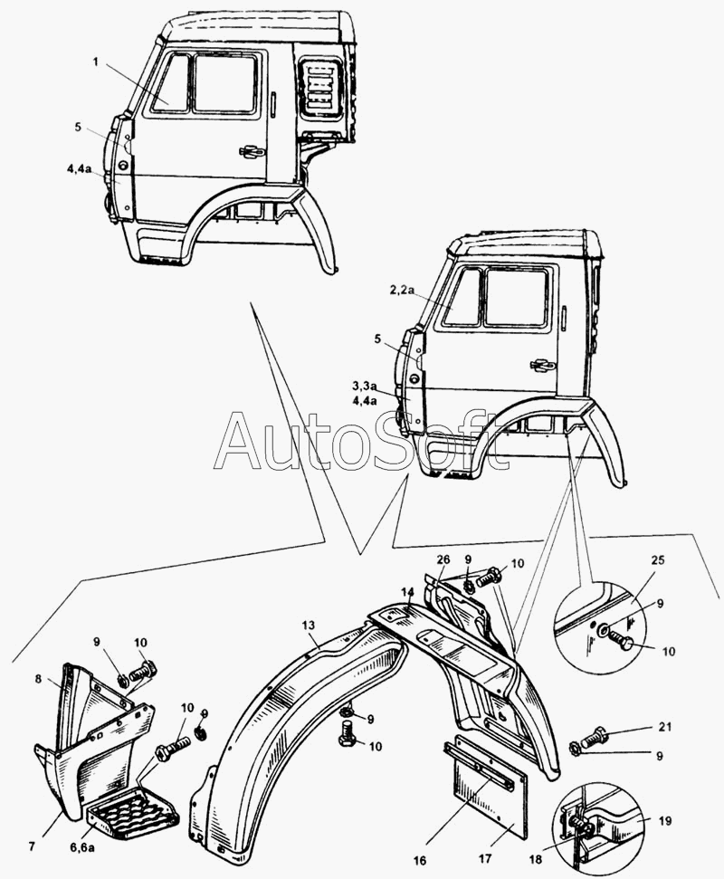 | Камский автозавод | Общий (5320, 53212, 5410, 54112, 5511, 55102) | 5320-5301046 | Панель передка боковая съемная правая в сборе | Передок кабины в сборе | |