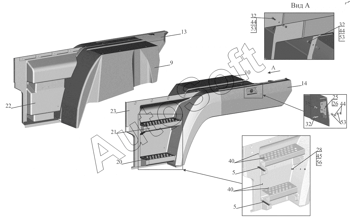 | МАЗ | МАЗ-5440B9, 6430B9 (2013) | 6312-8403015-000 | Панель крыла внутренняя | Оперение 6312-8400010-000, 6312-8400011-000 | |