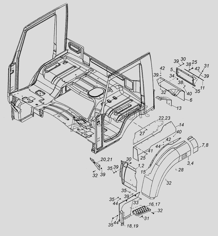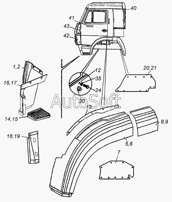 | Камский автозавод | 65116 (2006) | 65115-8403014-04 | Панель передней части крыла правая в сборе | Установка оперения кабины | |