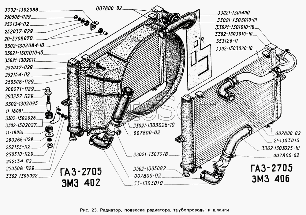 3302-1303010/25 Патрубки радиатора Г-3302 (406 двигатель) комплект 5шт.