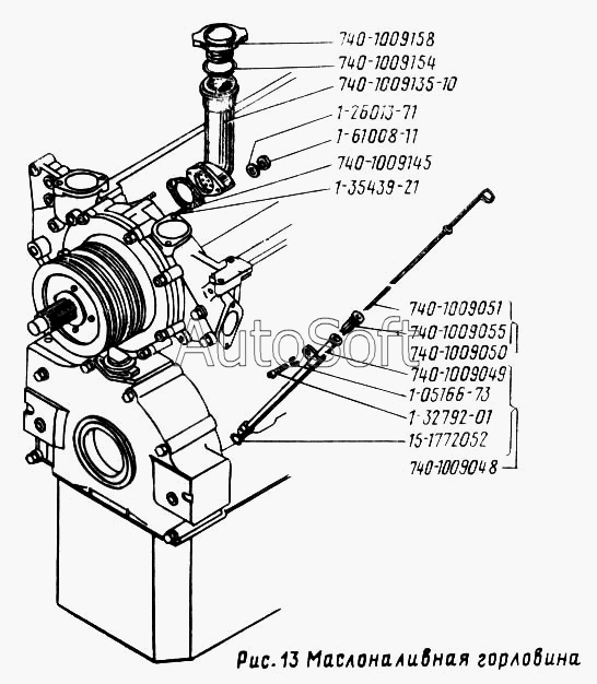 Камский автозавод | 5320 | 740.1009135 | Патрубок маслоналивной в сборе | Установка картера маховика | |