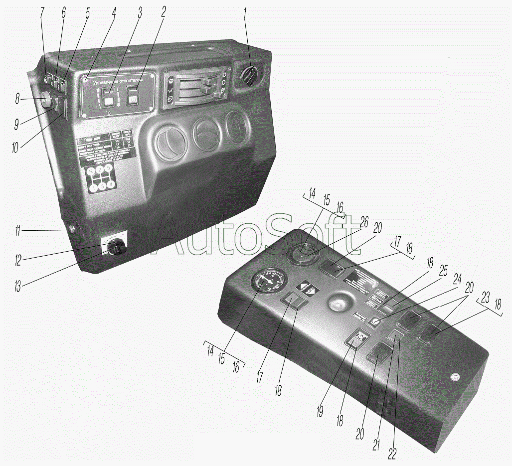 | УралАЗ | УРАЛ-6370-1151 (2011) | 771.3709-02.00 | Переключатель заслонки отопителя | Щиток выключателей |
