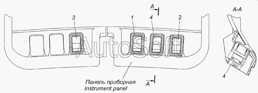 | ПАЗ | ПАЗ-4230 (2005) | 771.3709-02.19 | Переключатель управления дверью водителя | Щиток и комбинация приборов |