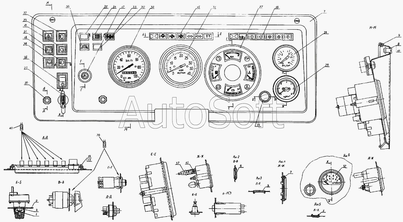 | Камский автозавод | 6520 | 581.3710-01 | Центральный переключатель света | Щиток приборов |
