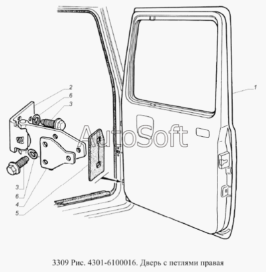 | ГАЗ | ГАЗ-3309 (Евро 2) (2008) | 3307-6106010 | Петля двери правая | Дверь с петлями правая |