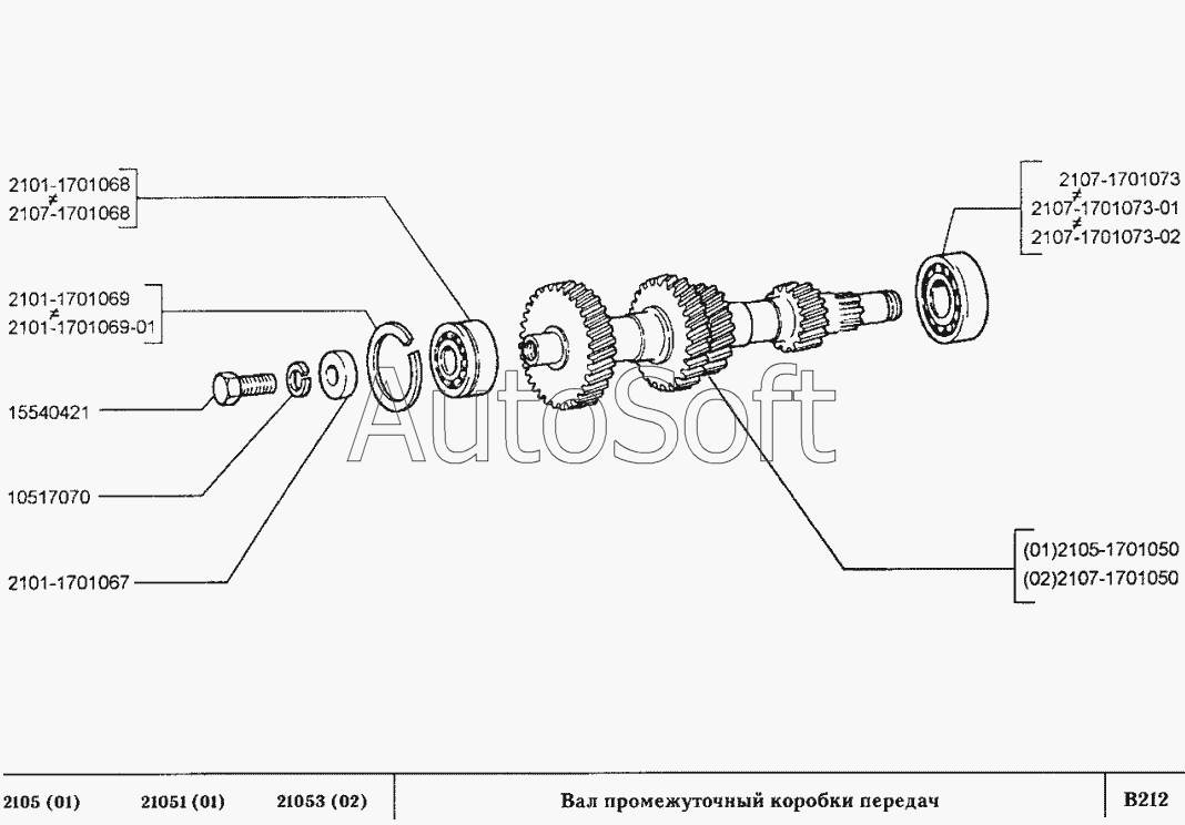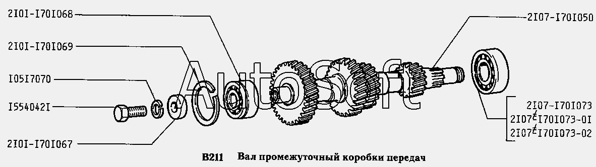| ВАЗ | ВАЗ-2105 (2002) | 2101-1701068 | Подшипник качения (обзначение ГПЗ - 6-156704) | Вал промежуточный коробки передач |