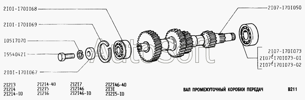 | ВАЗ | ВАЗ-2131 (NIVA) (2000) | 2101-1701068 | Подшипник качения (обзначение ГПЗ - 6-156704) | Вал промежуточный коробки передач |