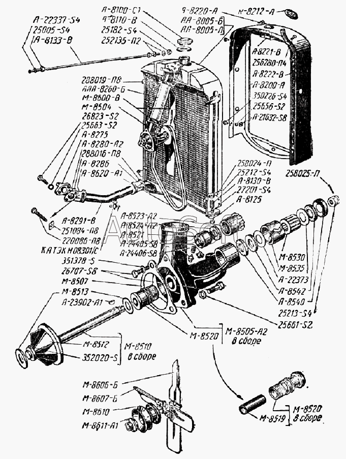 | ГАЗ | ГАЗ-ММ "Полуторка" (1949) | ААА-8260-Б | Шланг радиатора, резиновый, верхний | Блок цилиндров, радиатор, трубопроводы и шланги, краник сливной, насос водяной, вентилятор |