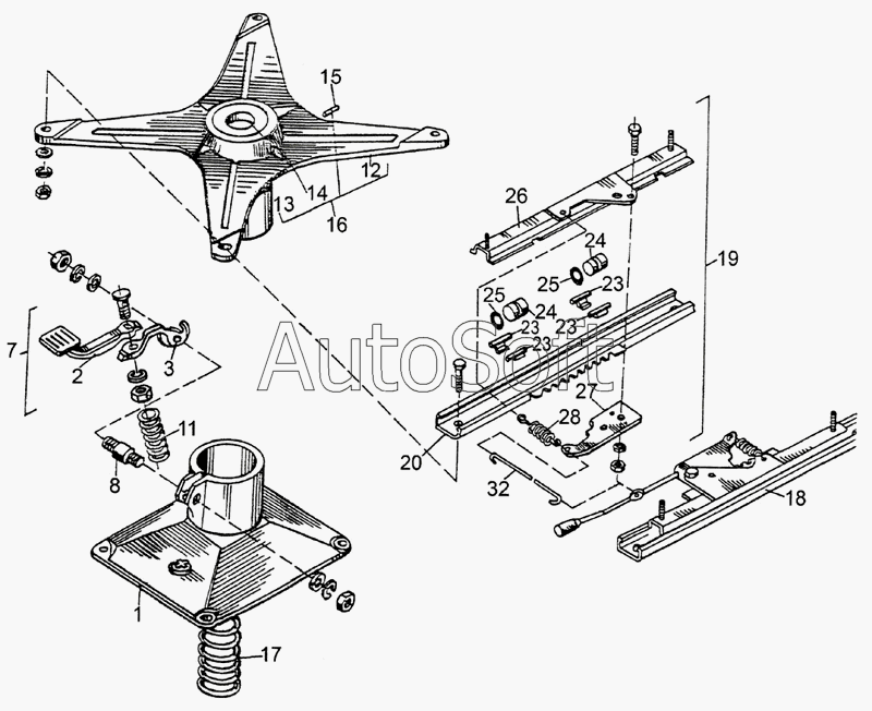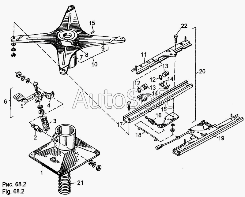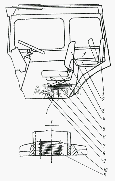 МЗКТ | МЗКТ-79092 (2005) | 5336-6807010 | Подставка сидения водителя | Подставка сиденья и регулировочный механизм |