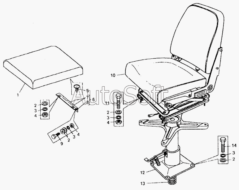 БелАЗ | 7822 (2008) | 5336-6807010 | Подставка сиденья | Установка сиденья |
