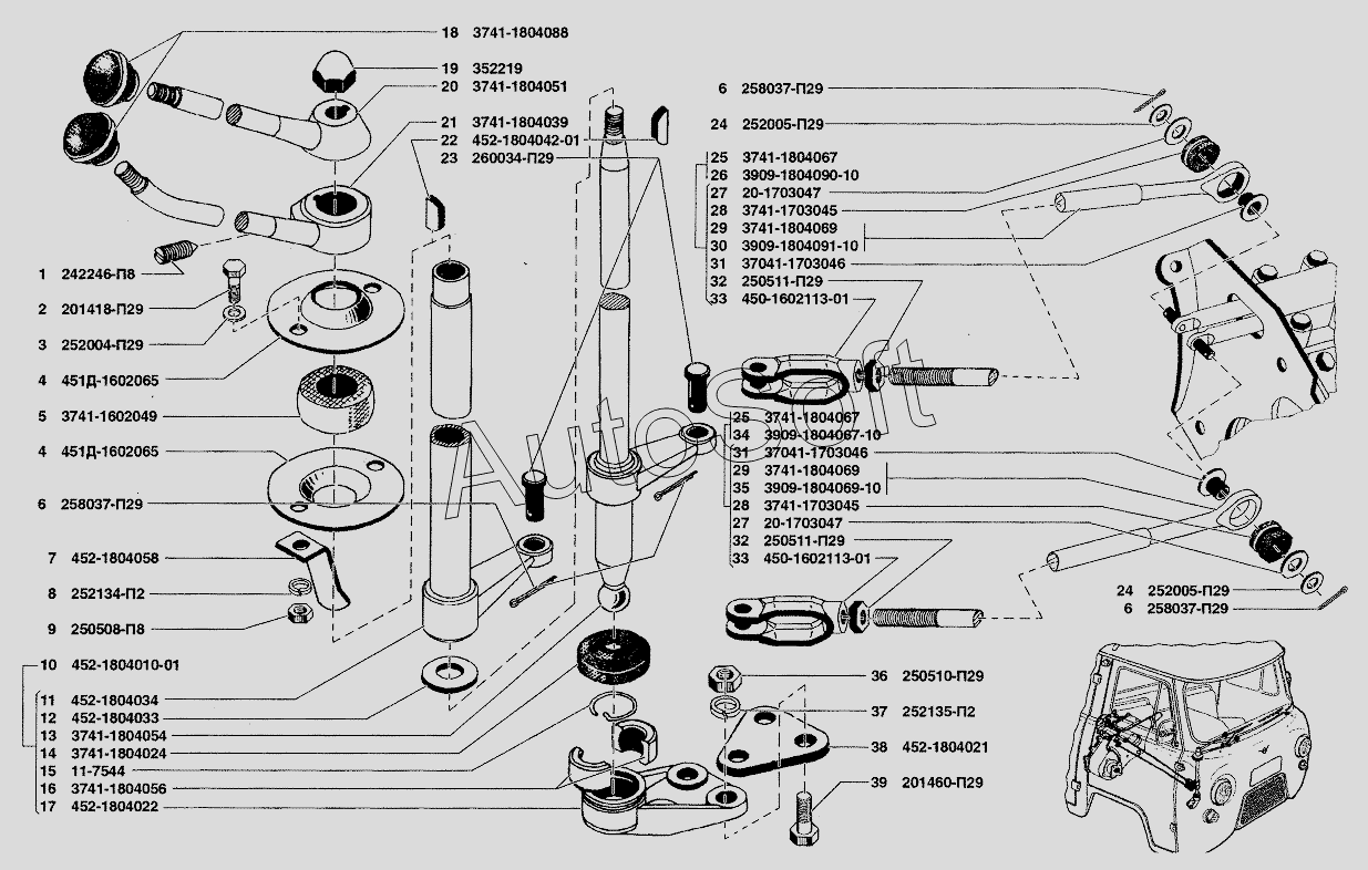 УАЗ | УАЗ 3741 (каталог 2002 г.) (2002) | 3741-1703045 | Подушка противошумная | Привод управления механизмом переключения передач | |
