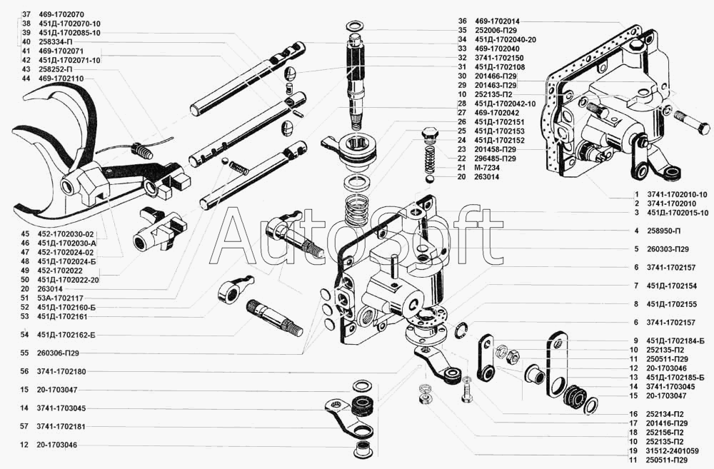 УАЗ | УАЗ 3741 (каталог 2002 г.) (2002) | 3741-1703045 | Подушка противошумная | Механизм переключения передач |