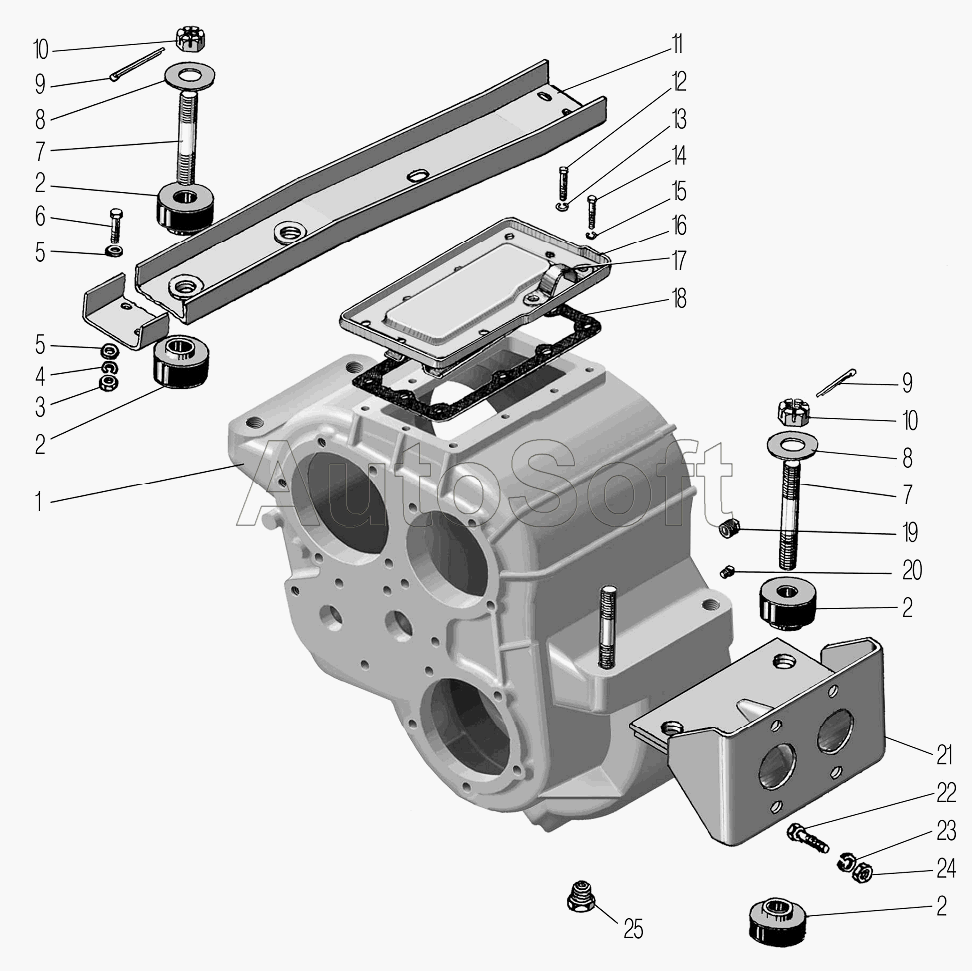 | УралАЗ | УРАЛ-4320 (1981) | 375-1801030 | Подушка подвески раздаточной коробки в сборе | Картер и подвеска раздаточной коробки |