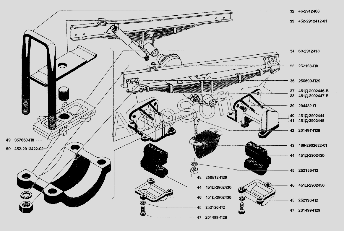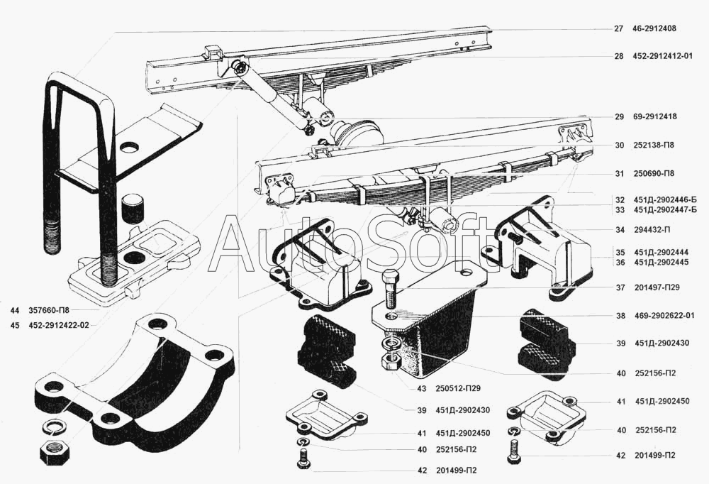 УАЗ | УАЗ-3962 | 451Д-2902430 | Подушка рессоры | Рессоры задние | |
