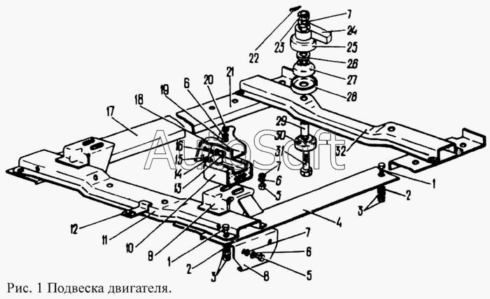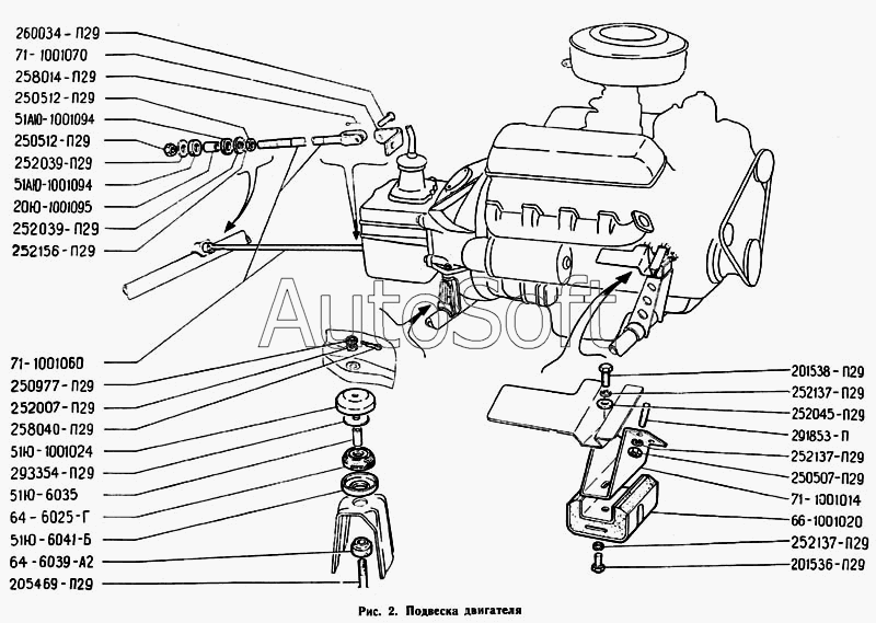 ГАЗ | ГАЗ-71 | 64-6025-Г | Подушка задней опоры двигателя верхняя в сборе | Подвеска двигателя |