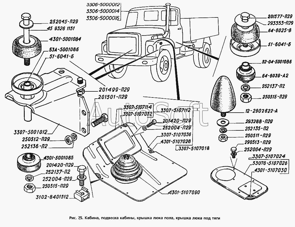 ГАЗ | ГАЗ-3307 (2000) | 64-6025-В | Подушка крепления кабины верхняя задняя в сборе | Подвеска кабины, кожух пола | |