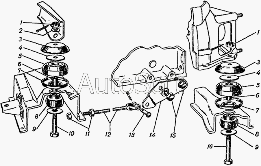 ГАЗ | ГАЗ-51 (63, 63А) (1956) | 64-6039 | Подушка бокового и заднего крепления кабины к раме нижняя в сборе | Подвеска двигателя |