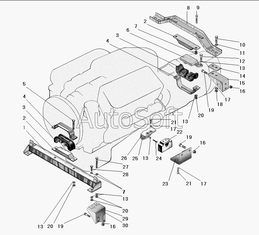 | МАЗ | МАЗ-6303 (2000) | 6422-1001035 | Подушка боковой опоры двигателя | Крепление силового агрегата МАЗ-53366 |