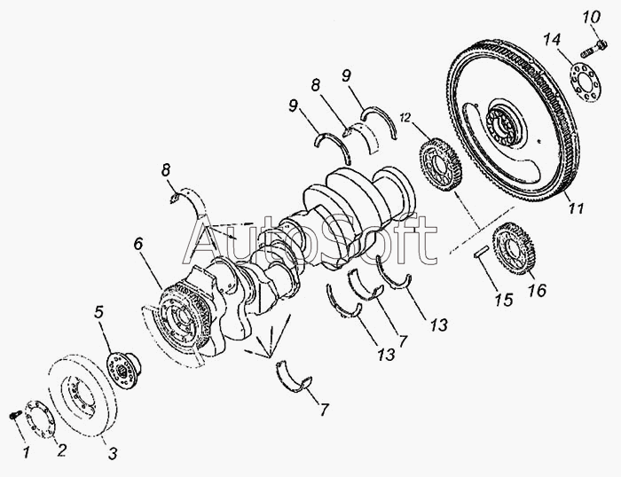 Камский автозавод | 5511 (2003) | 740.1005183 | Полукольцо упорного подшипника коленчатого вала нижнее | Установка вала коленчатого с маховиком |