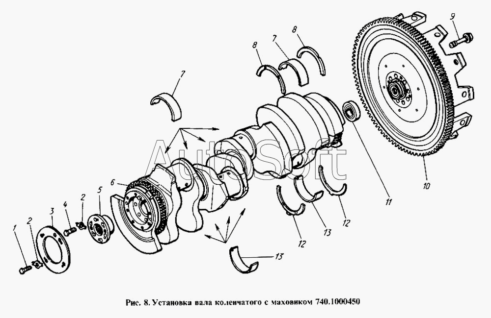 Камский автозавод | 5320 | 740.1005183 | Полукольцо упорного подшипника коленчатого вала нижнее | Установка вала коленчатого с маховиком |
