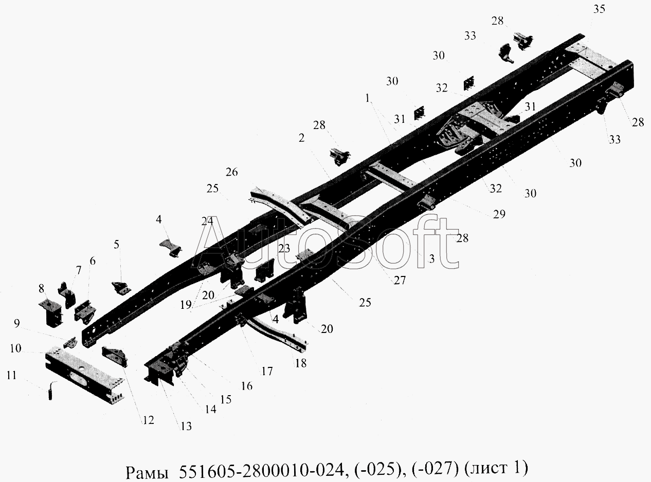 551605-2801100-014 Поперечина, МАЗ ОАО — устанавливается на сборочном конвейере ОАО МАЗ.