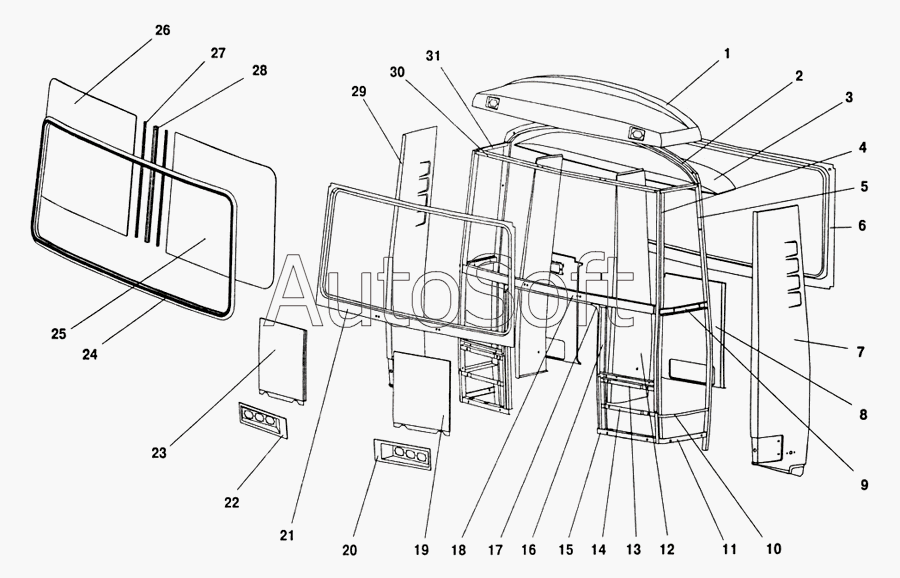 ПАЗ | ПАЗ-32053 (2004) | 3205-5601030-10 | Пояс задка подоконный в сборе | Задок кузова с остеклением |