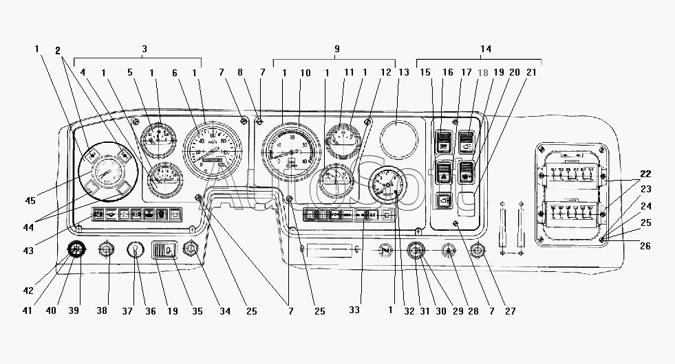 | УралАЗ | УРАЛ-4320-31 | УБ170М-3806010 | Приемник указателя уровня топлива | Панель приборов |