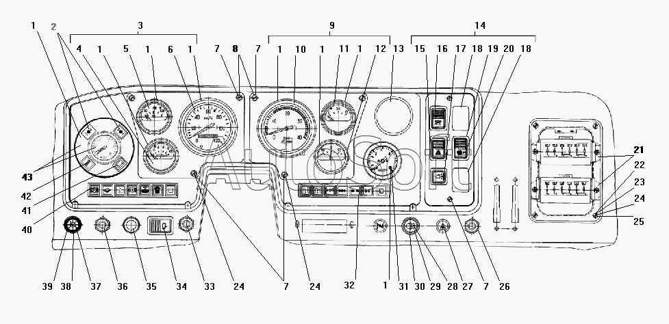 | УралАЗ | УРАЛ-43203-10 | УБ170М-3806010 | Приемник указателя уровня топлива | Панель приборов |