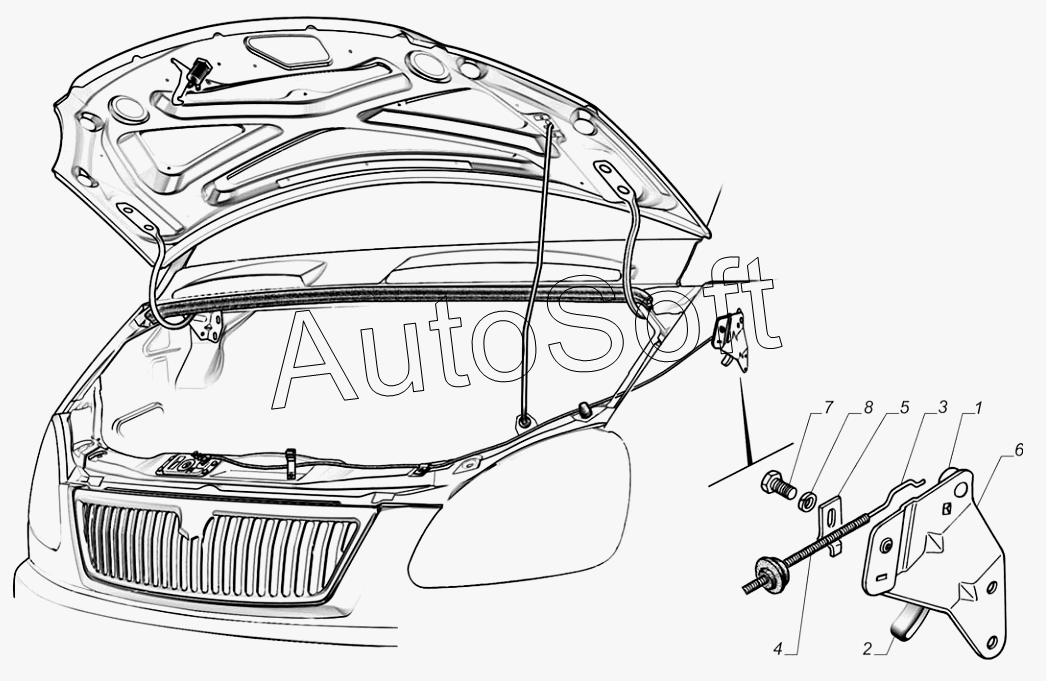 Капот с арматурой, замок капота и его привод, уплотнитель и петли капота (для автомобилей выпуска до 2003 г.)