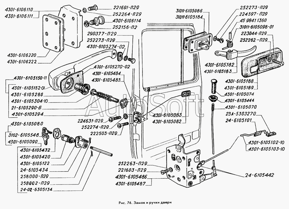 Личинка A21R23-6105411 замка двери (2 ключа+личинка) | |