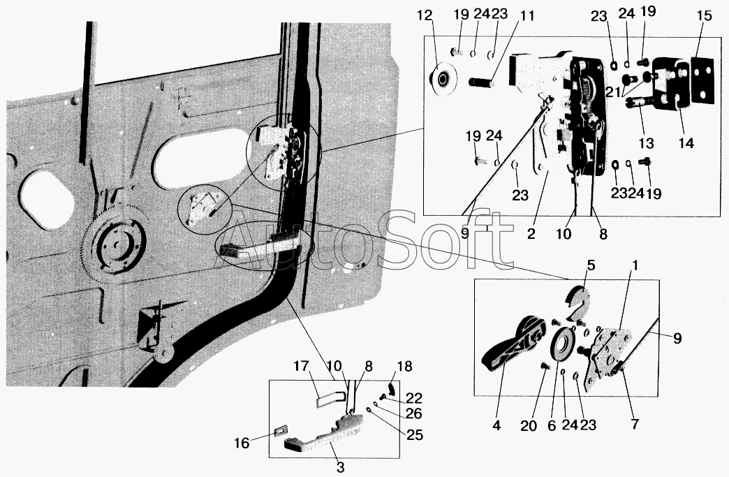 64221-6105171-010 Привод замка двери, ВолМет,Волковыск — устанавливается на сборочном конвейере ОАО МАЗ.