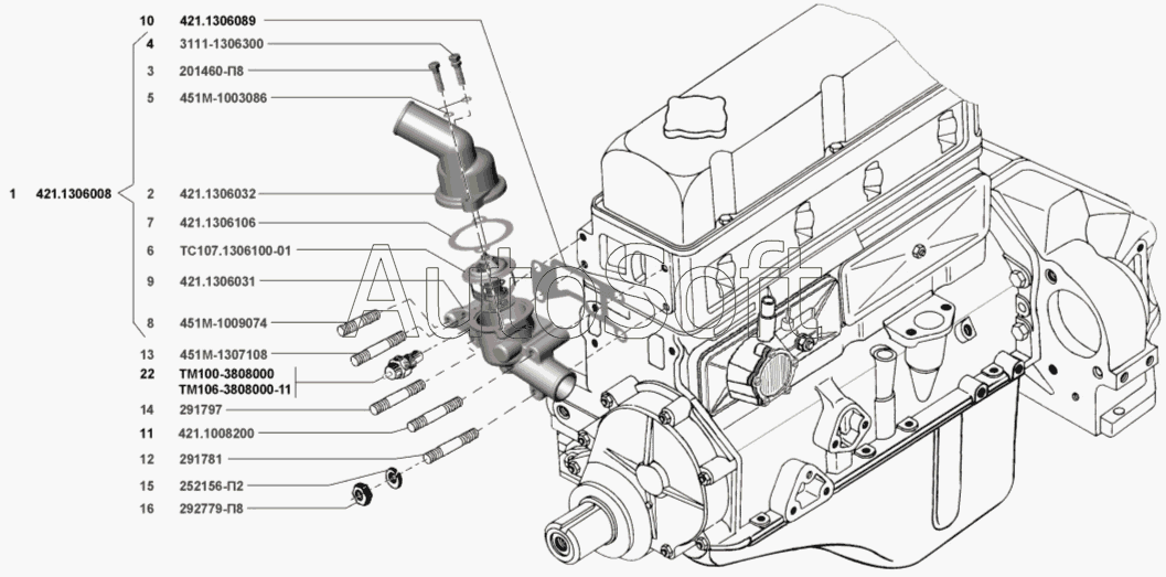 | УМЗ | УМЗ-4216 (Евро 3) (2008) | 421.1306089 | Прокладка | Термостат | |
