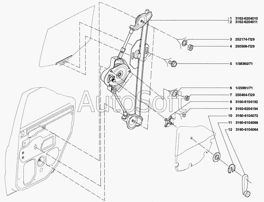 | УАЗ | УАЗ-3160 (2002) | 1/38360/71 | Болт М6х12 | Механизм перемещения стекла задней двери | |