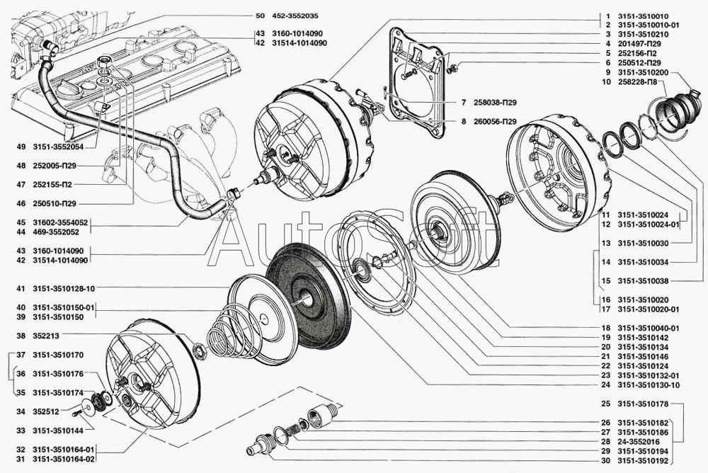 | УАЗ | УАЗ-3160 (2002) | 3151-3510200 | Чехол защитный | Усилитель вакуумный тормоза, трубопровод вакуумного усилителя |