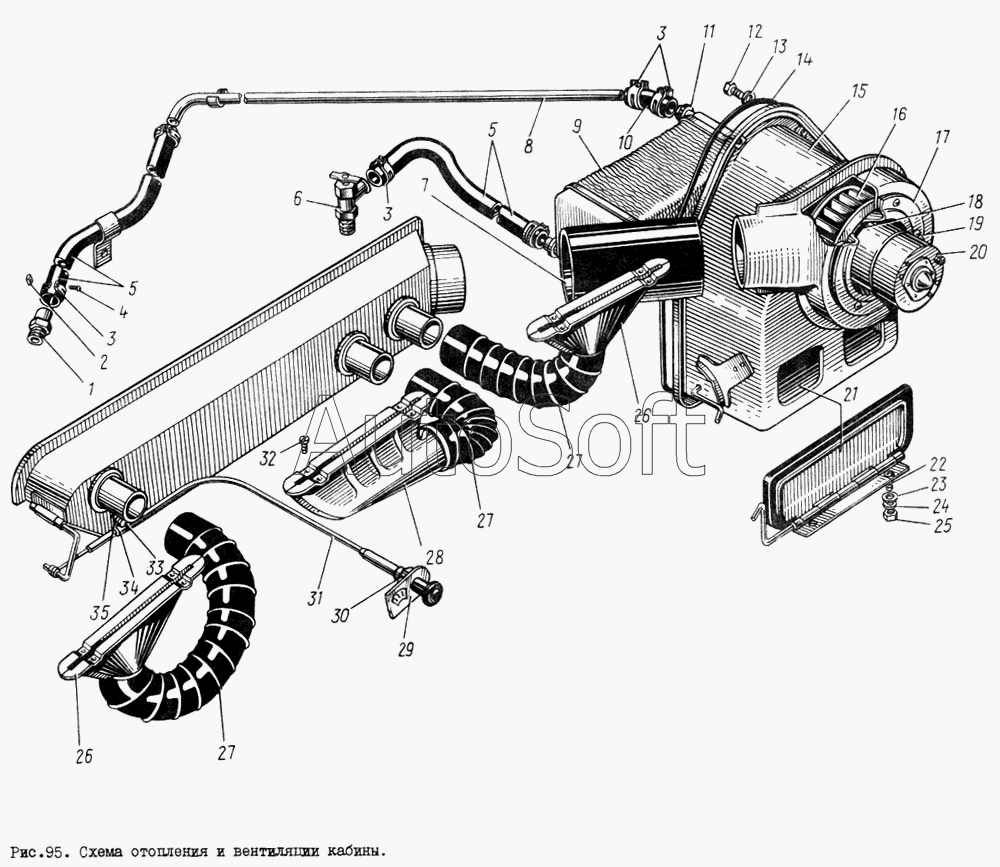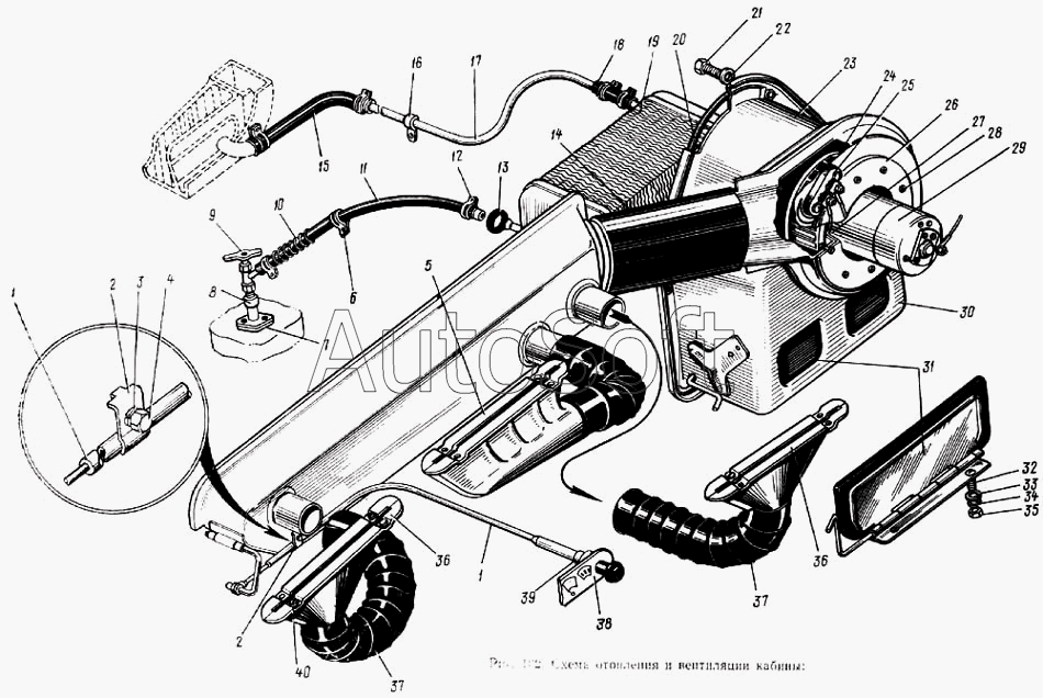 | ЗИЛ | ЗИЛ-133ГЯ | 130-8101012-А | Радиатор отопителя в сборе | Схема отопления и вентиляции кабины |