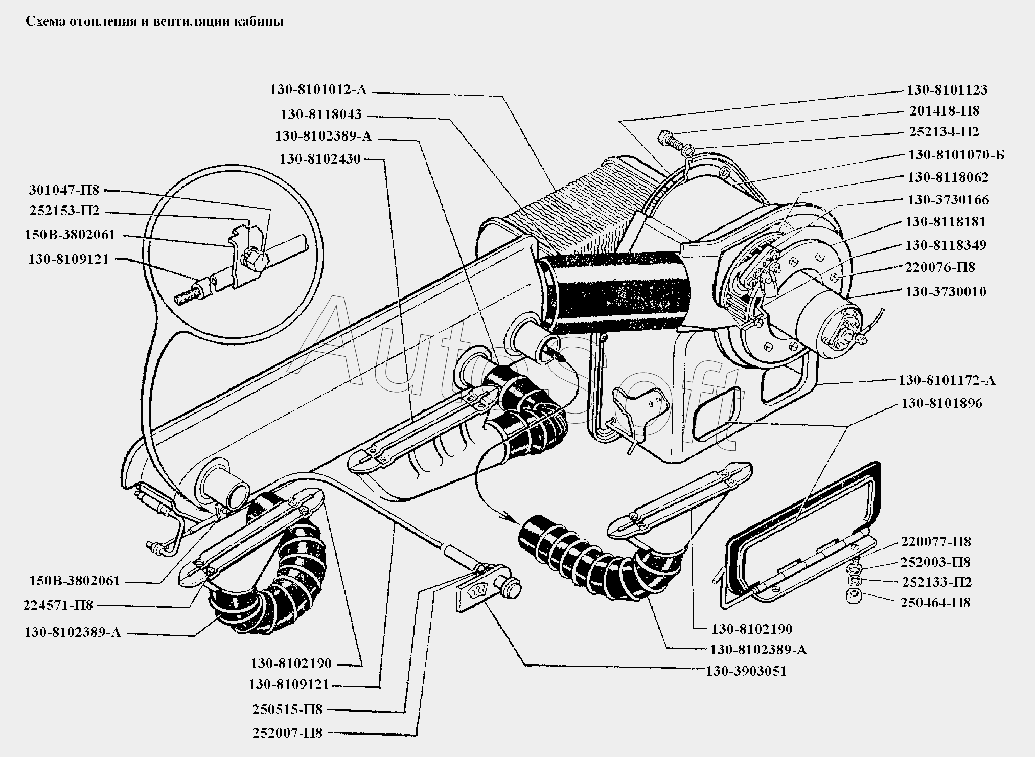 | ЗИЛ | ЗИЛ-130 (1985) | 130-8101012-А | Радиатор отопителя в сборе | Схема отопления и вентиляции кабины |