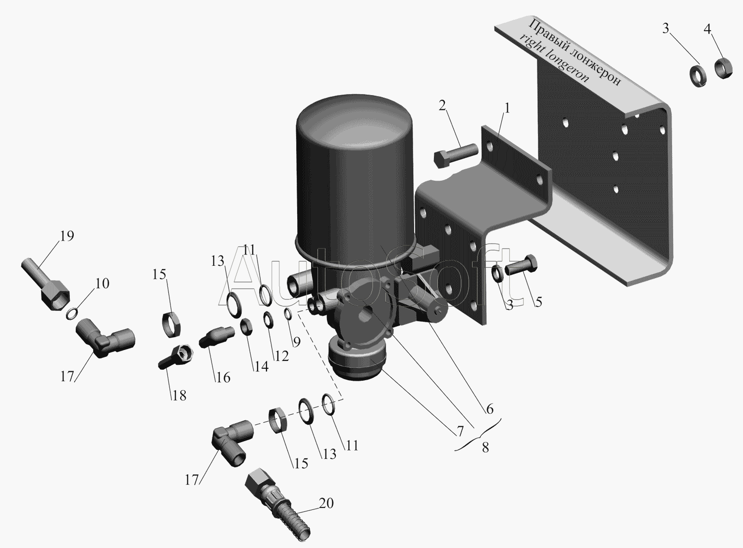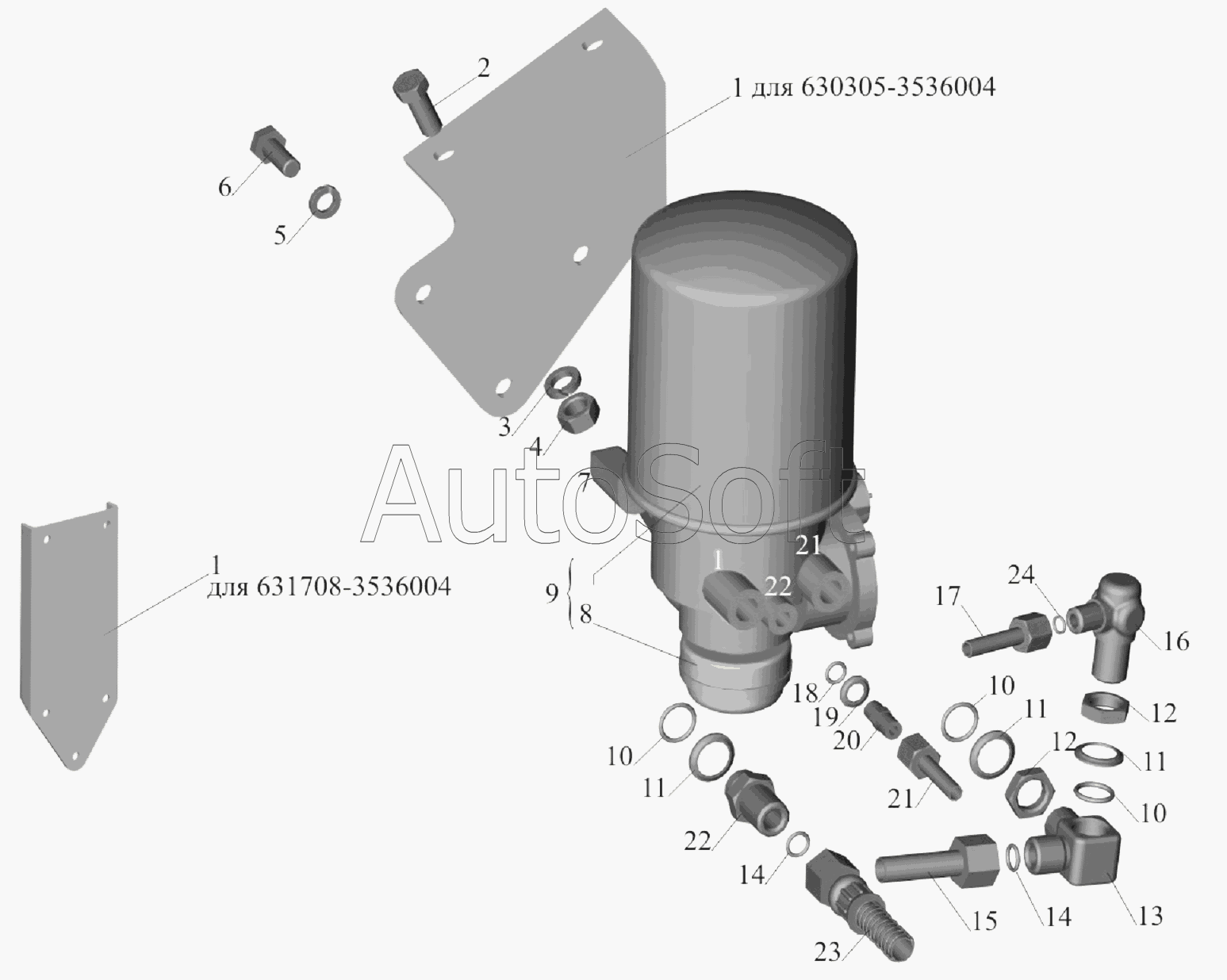 Регулятор давления с адсорбером 64221 64221-3512010 устанавливается в пневматической тормозной системе МАЗ для поддержания давления от 0.65 — 0.8МПа и осушки воздуха, нагнетаемого компрессором.