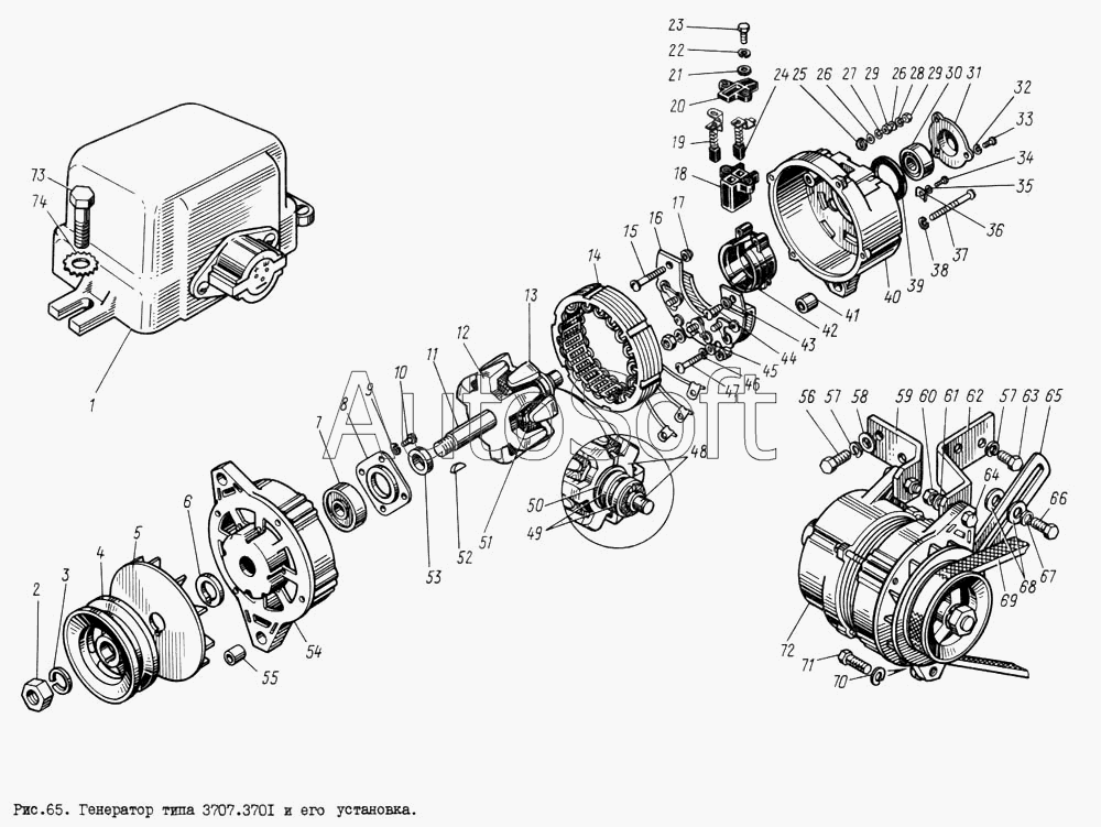 ЗИЛ | ЗИЛ-131 | 130Т-3702010-11 | Регулятор напряжения типа 201.3702 в сборе | Генератор типа 3707.3701 и его установка |