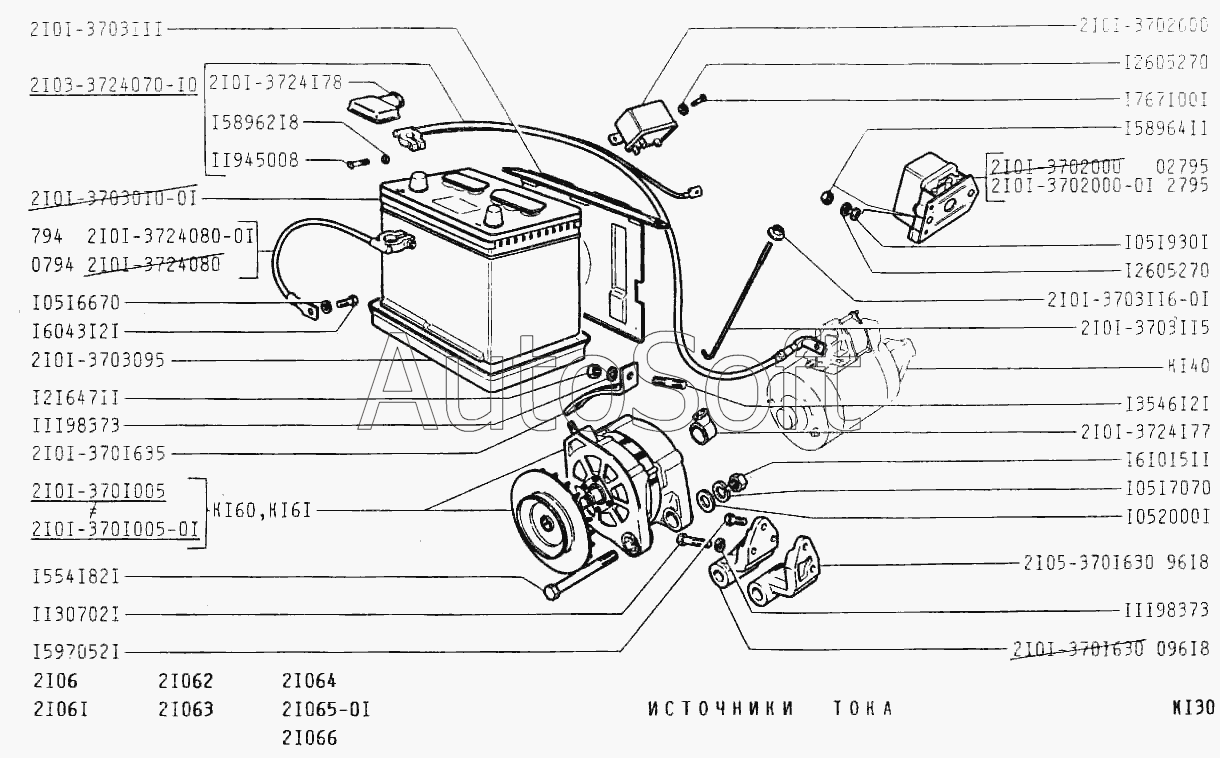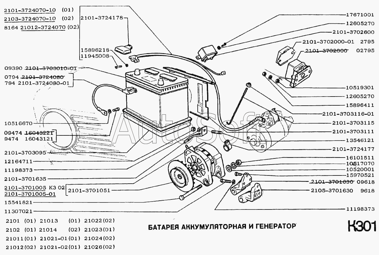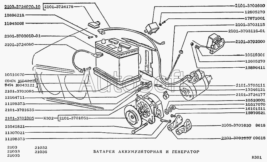 | ВАЗ | ВАЗ-2101 (1982) | 2101-3702000-03 | Регулятор напряжения | Батарея аккумуляторная и генератор |
