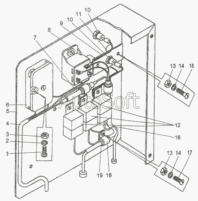 | Амкодор | Амкодор-327 (ТО-18Д) (2003) | 731.3747 | Реле ТУ37.469.008-92 | Панель электроаппаратов |
