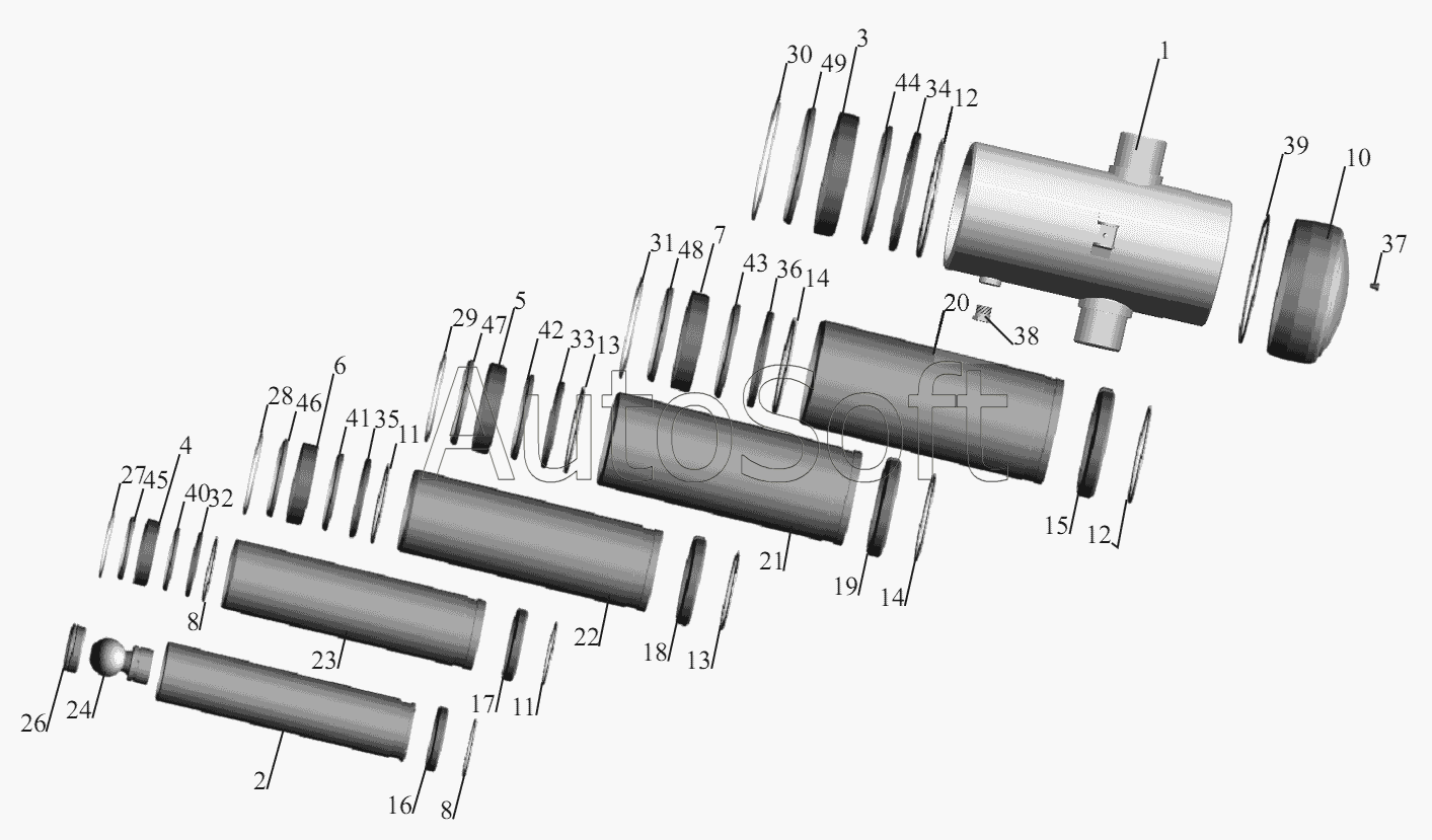 | Гидроцилиндр 20т (5 ступ) 3-х сторонняя разгрузка | |