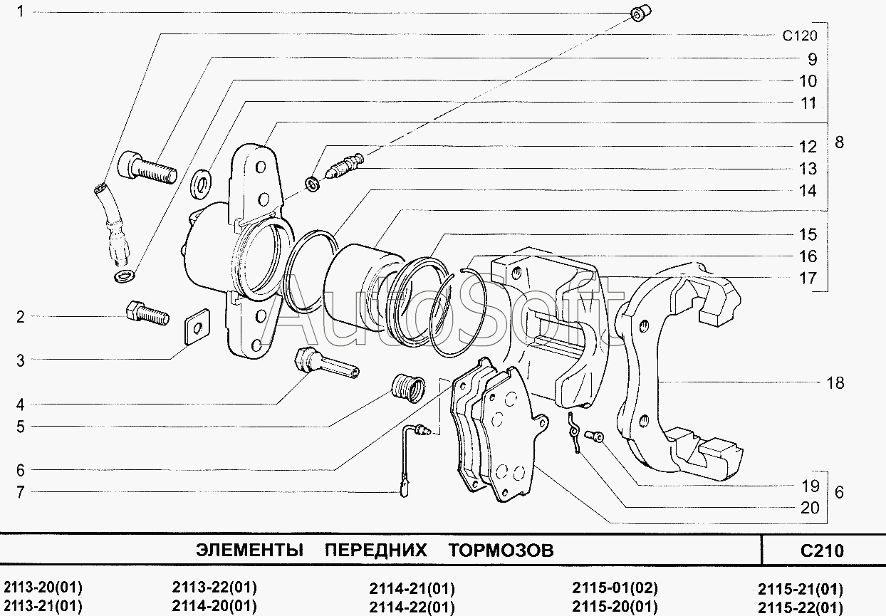 Ремкомплект суппорта 2108-3501018-86 производства ВАЗ (РФ), Код для заказа: 00-ГР001150
