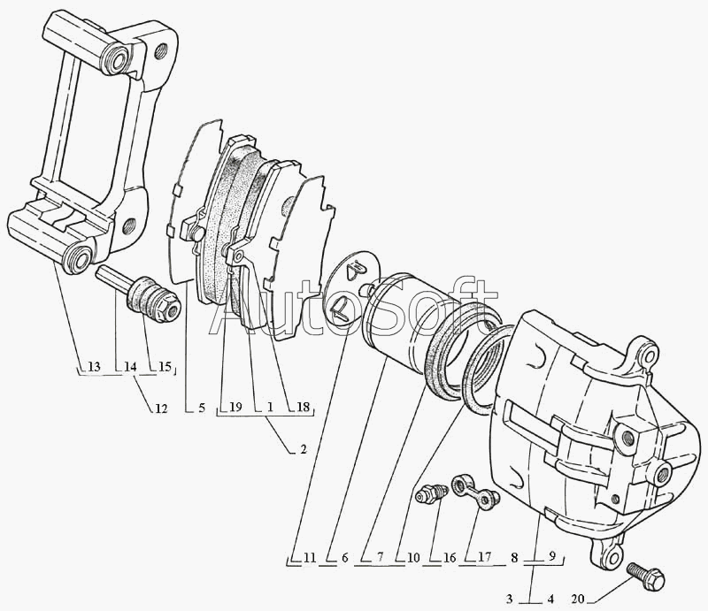 ГАЗ | ГАЗ-2217 (Соболь) (1999) | 3105-3501216 | Чехол пальца | Корпус и основание скобы, колодки с накладкой передних дисковых тормозов | |