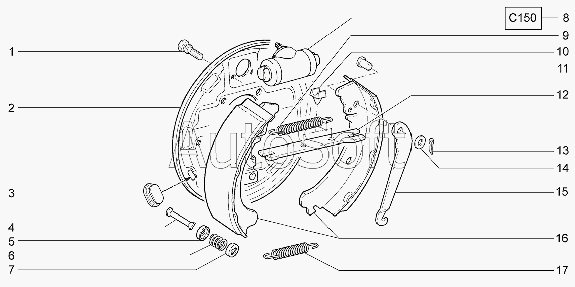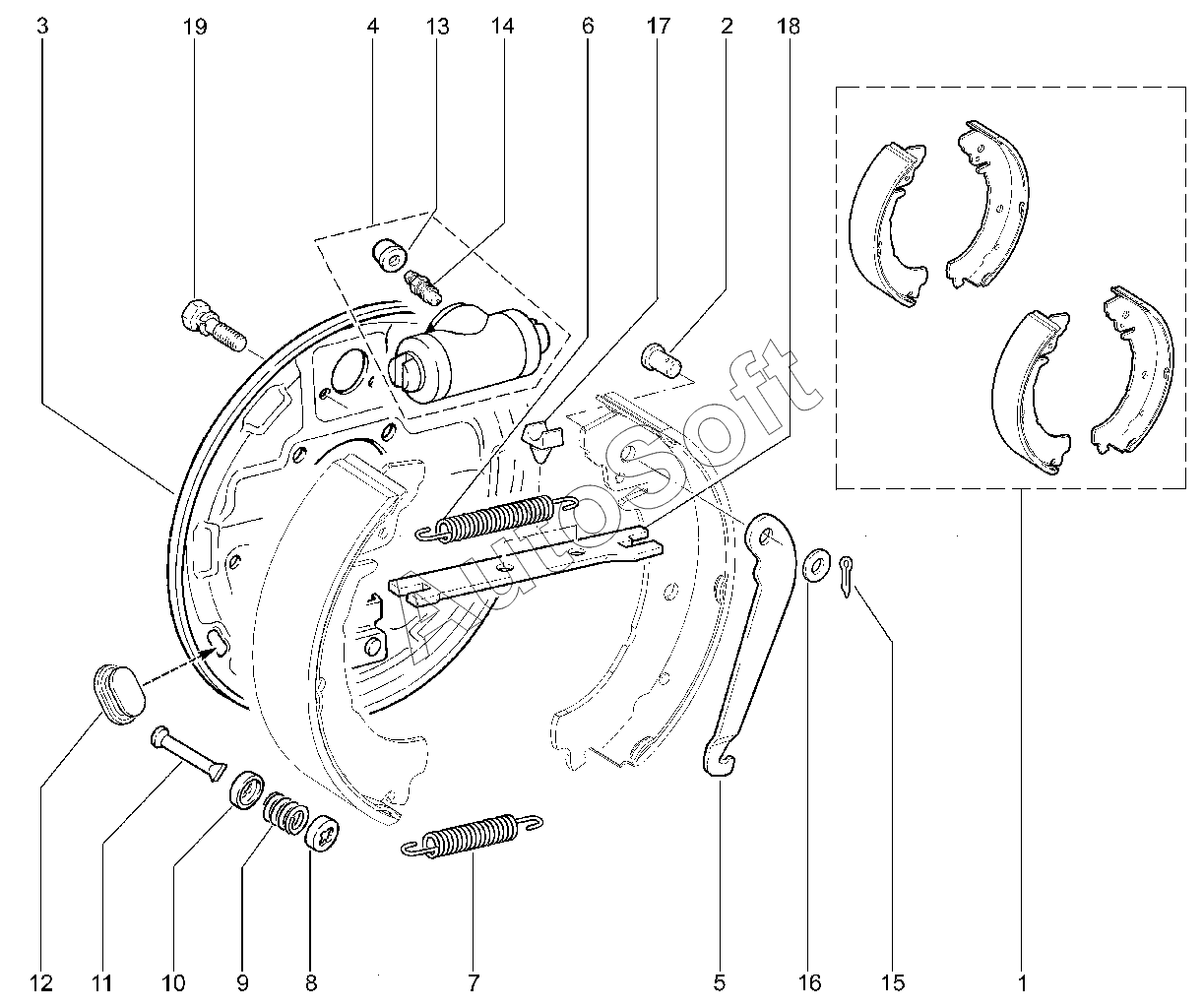 Ремкомплект задних тормозных колодок 21010-3502100-00 производства ВАЗ (РФ), Код для заказа: 00-ГР018491
